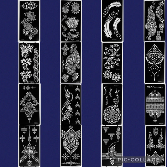 Set of 10 or 20 Random Henna Stencils | Stencil for Henna, Jagua, Glitter, Air Brush Temporary Tattoos | Mehndi Stencils