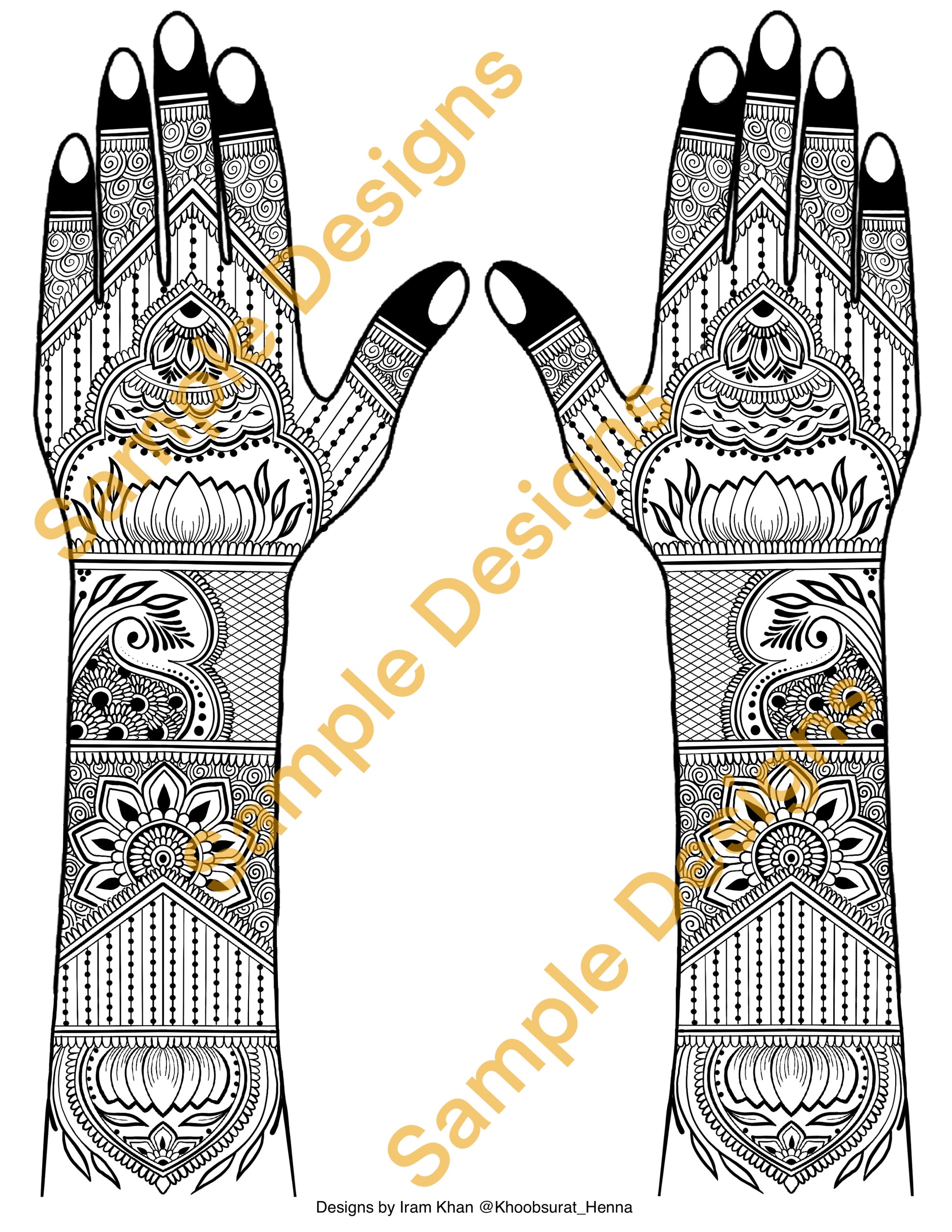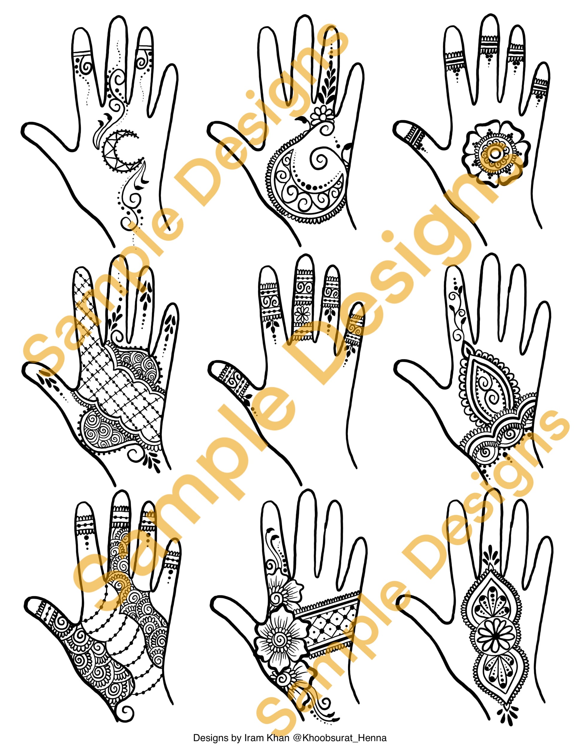 I created these designs over a course of 8+years since I started doing henna. These are all hand drawn by me (Iram- Henna Artist of Khoobsurat Henna).